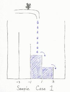 The faucet is above location x=0, and the dividers are located at x=-1, -3,